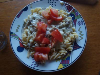 aber die Antwort ist einfach: Da ja die Bahn nicht fährt, blieb mir heute die Möglichkeit eine Bildungsanstalt (sprich Schule :D) aufzusuchen, verwehrt. Also beschloss ich wenigstens etwas sinnvolles zu machen und bekochte meine kleine Schwester die um 12 äußerst hungrig heimkam. Und diese Nudeln mit einer Champignon-Käse -Sauce kam dabei heraus, also Ihr hats geschmeckt und wir leben beide noch -> so schlecht kanns nicht gewesen sein :D