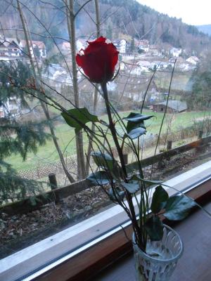 Ich habe eine Rose geschenkt bekommen ( die wirklich wirklich toll ist-mittlerweile ist es ja schon 2 Wochen her, aber die Rose blüht...)